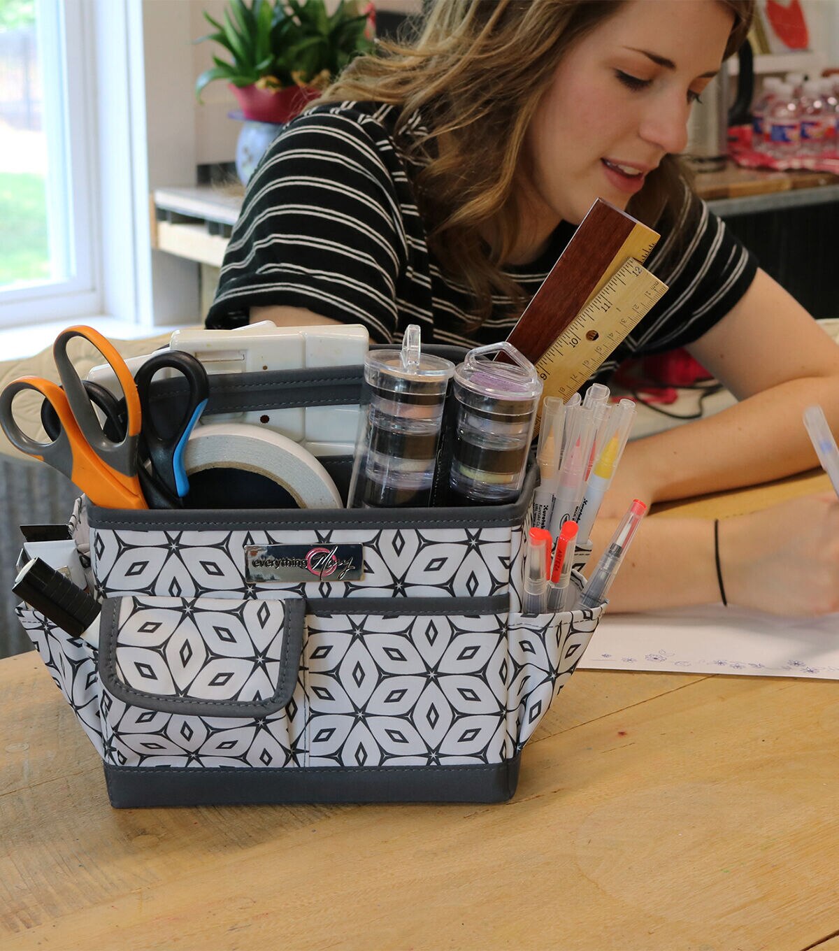 Everything Mary 8" Gray & White Geometric Collapsible Craft Caddy