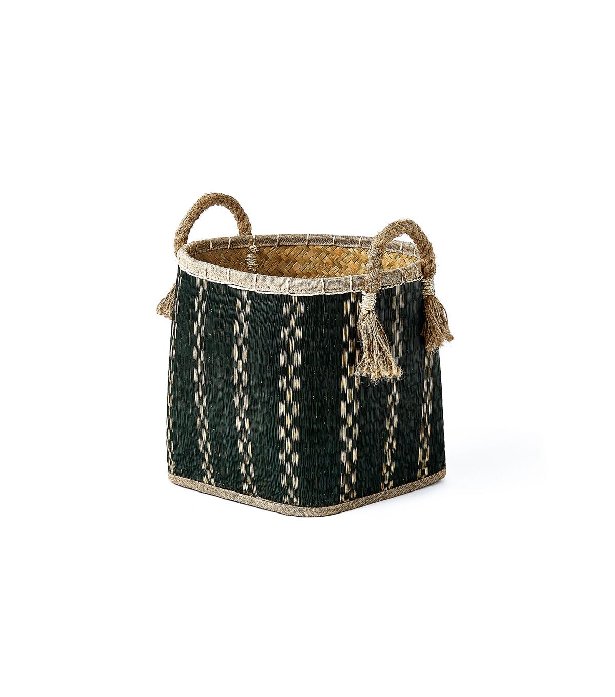 Green Square Palm Leaf Basket With Handles by Place & Time