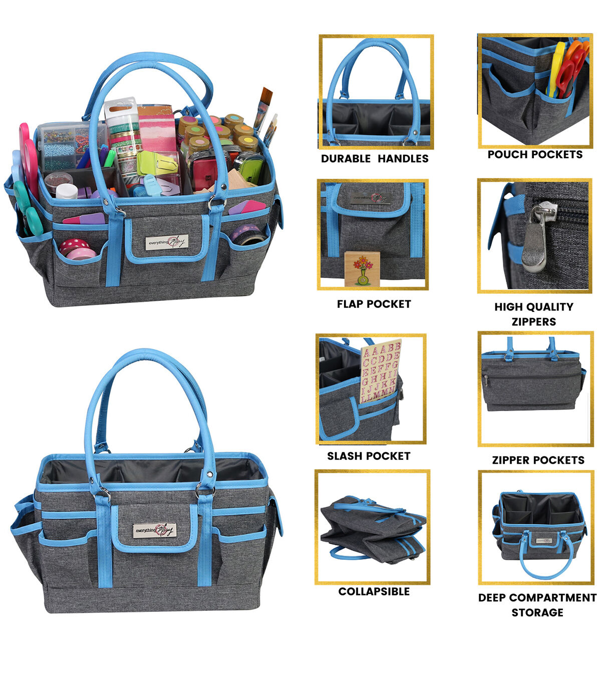 Everything Mary 12" Blue & Gray Craft Bag Organizer Tote