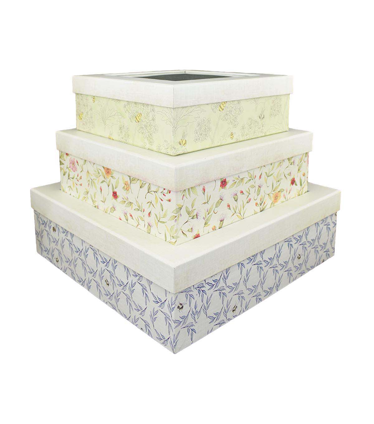 12.5" Bees on White & Blue Storage Box With Window Lid by Place & Time