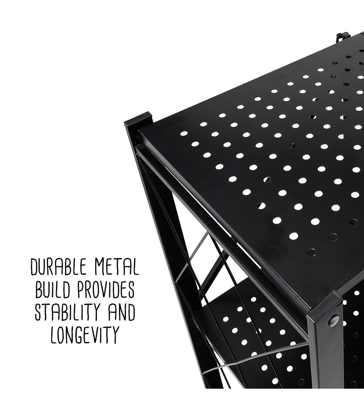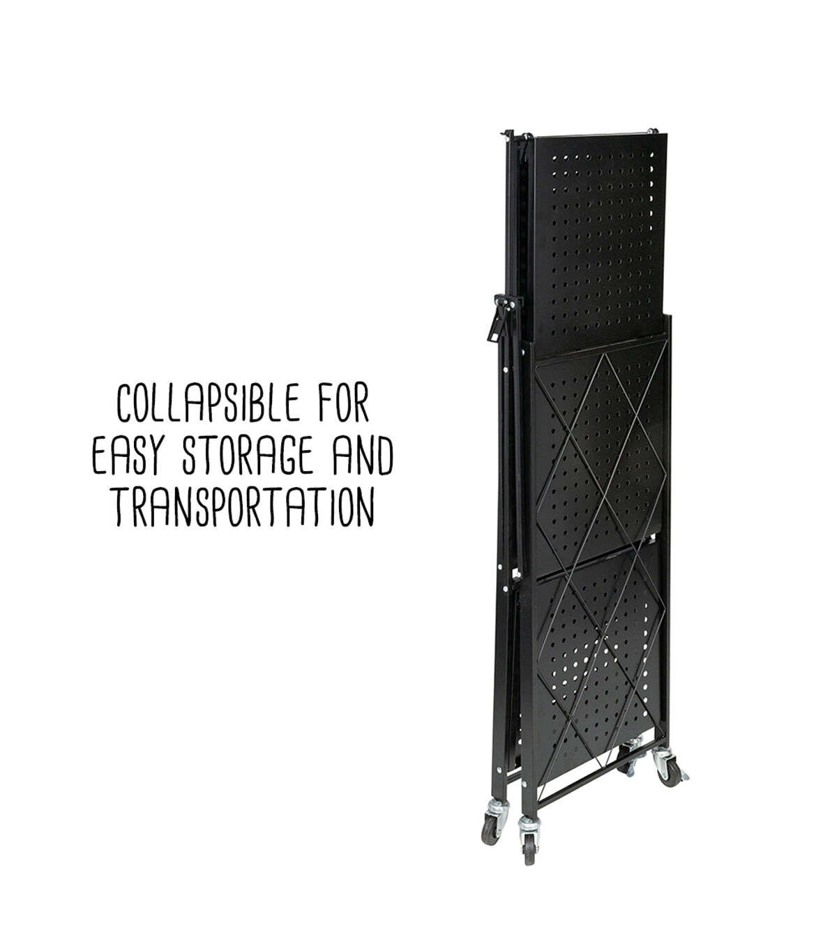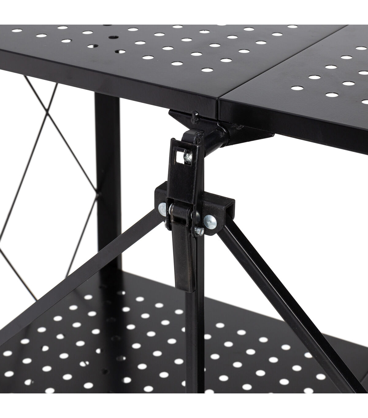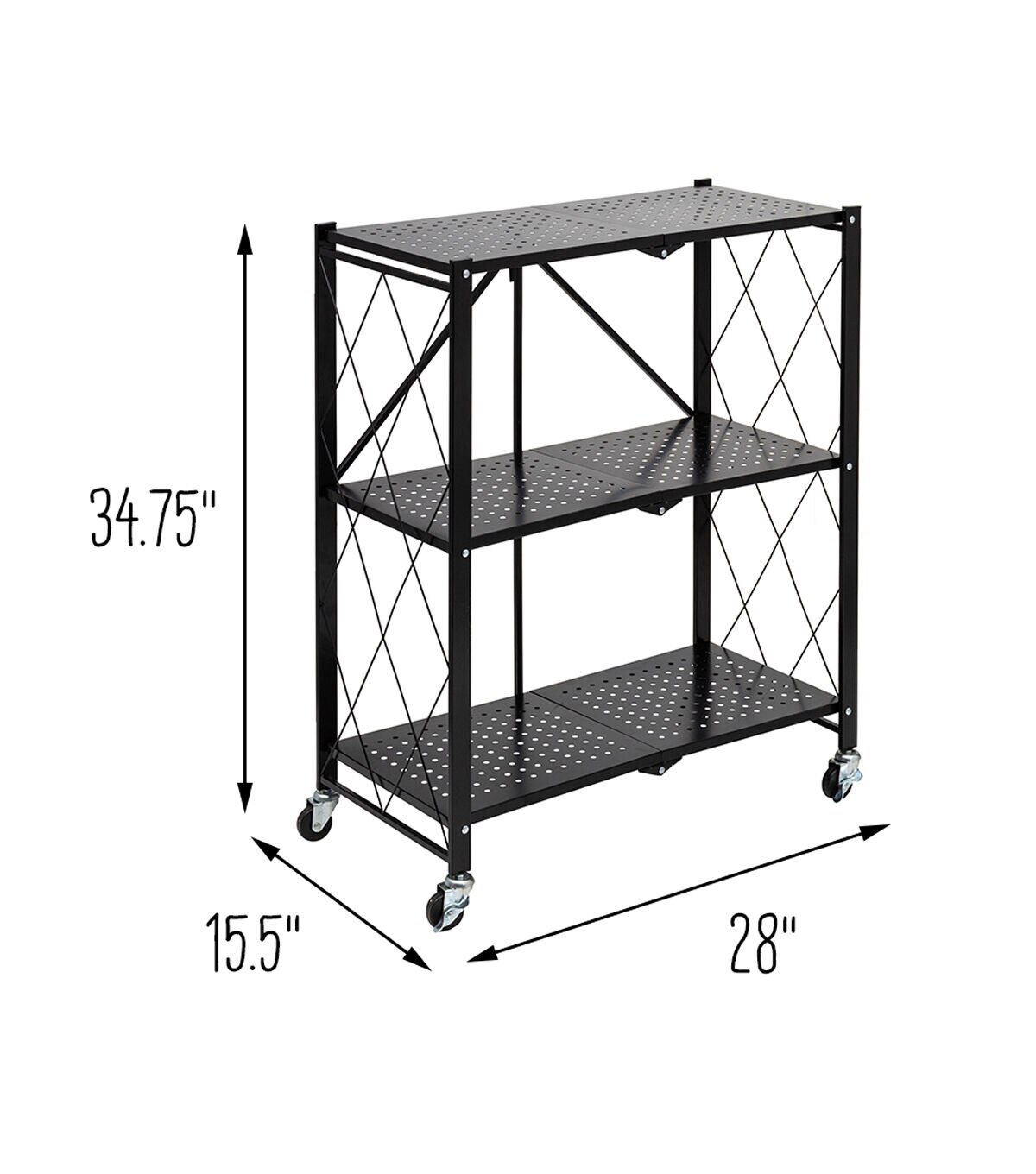 Honey Can Do 28" x 34.5" Black Folding 3 Tier Metal Rolling Shelf