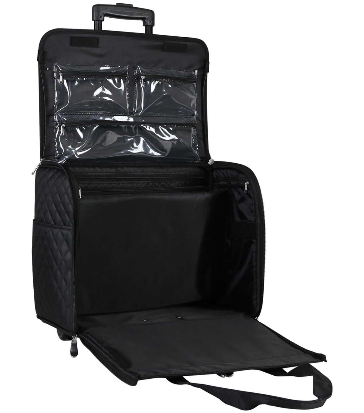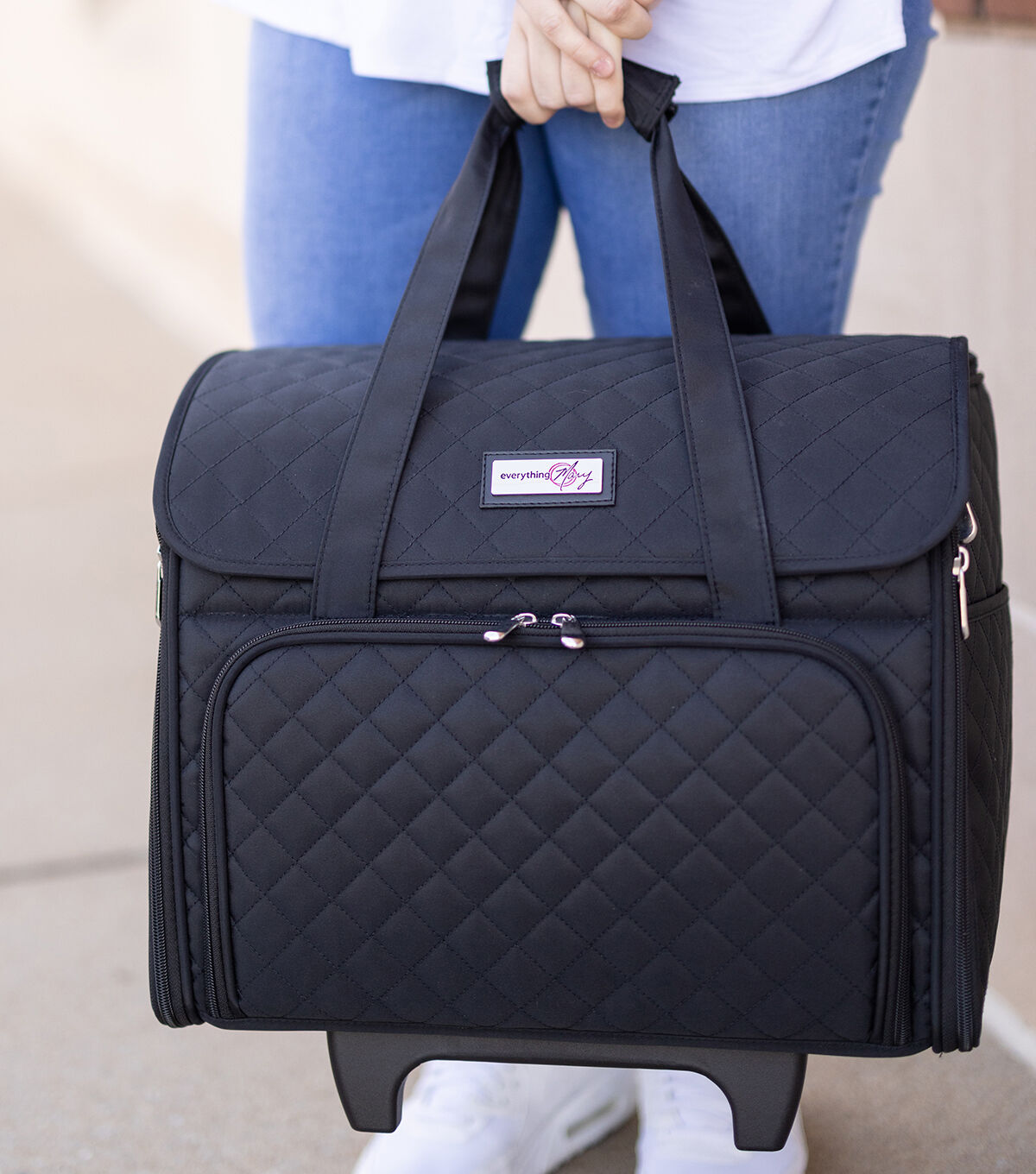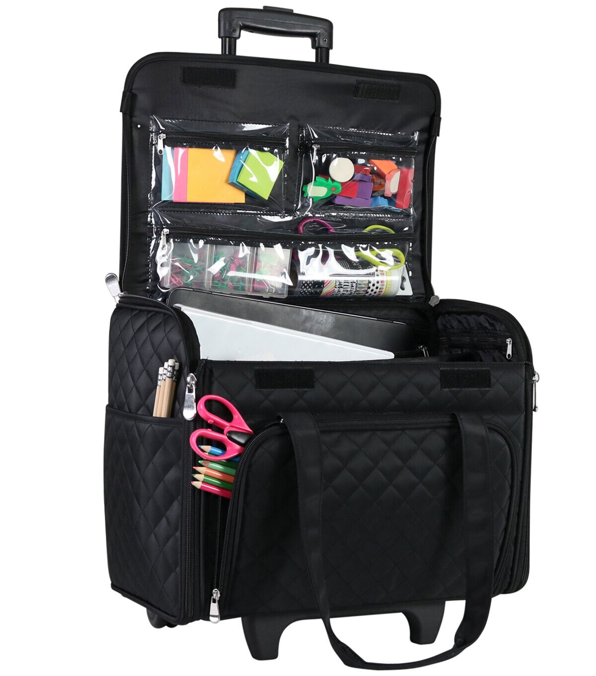Everything Mary 15.5" Black Quilted Collapsible Rolling Craft Bag