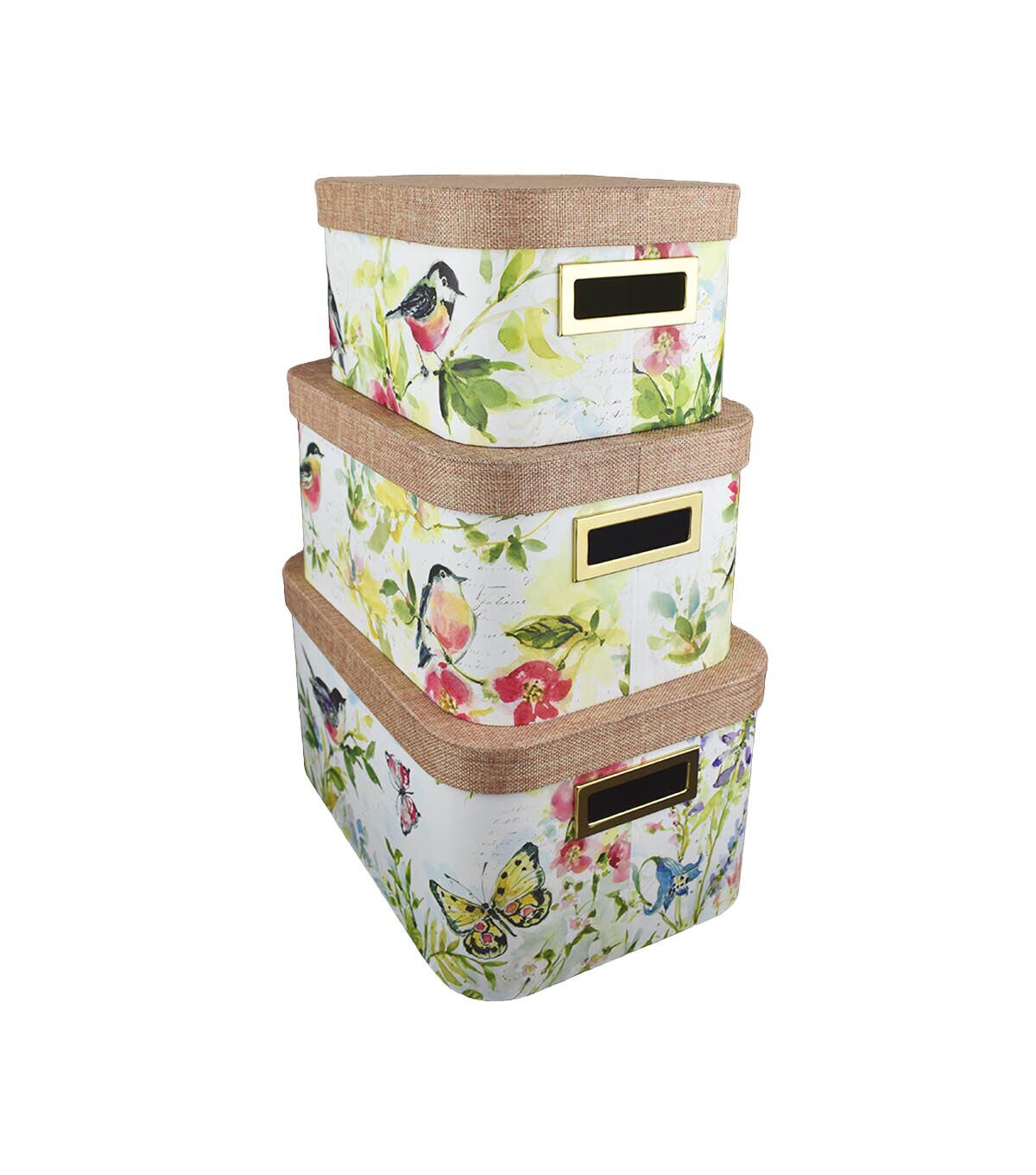 11" Floral on White Oval Box With Cut Out Handles by Place & Time