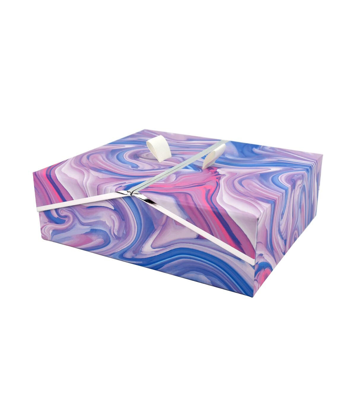 9.5" Purple Marble Rectangle Box With Double Door Lid & Metallic Trim