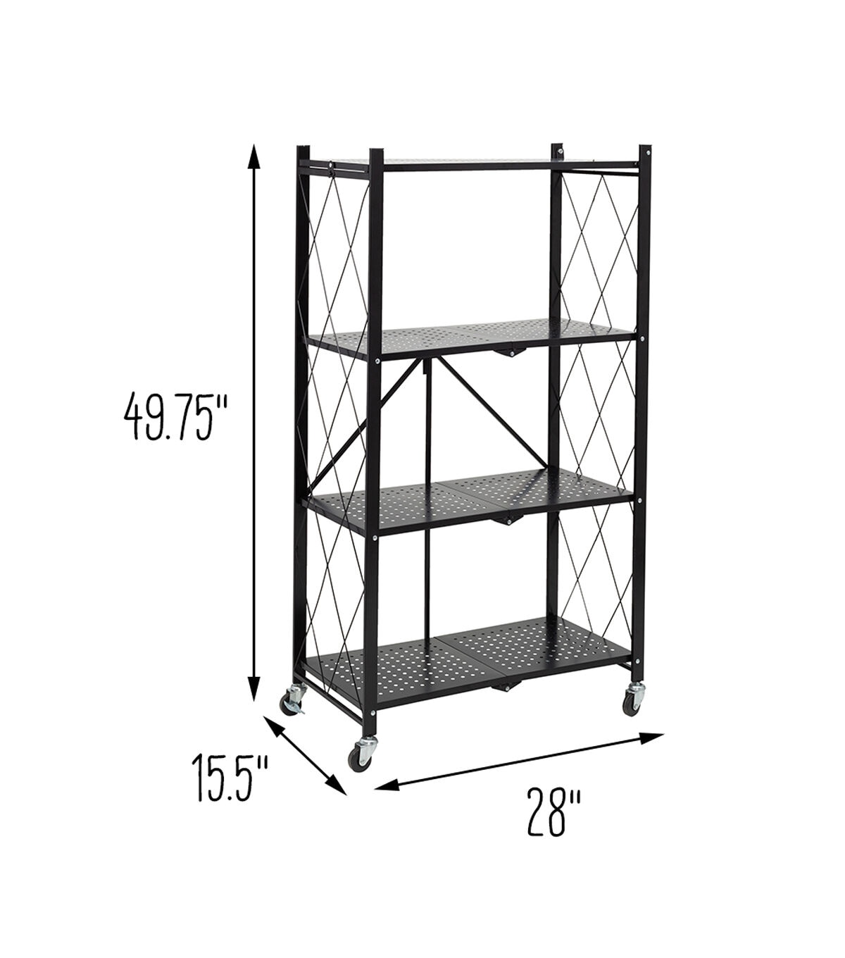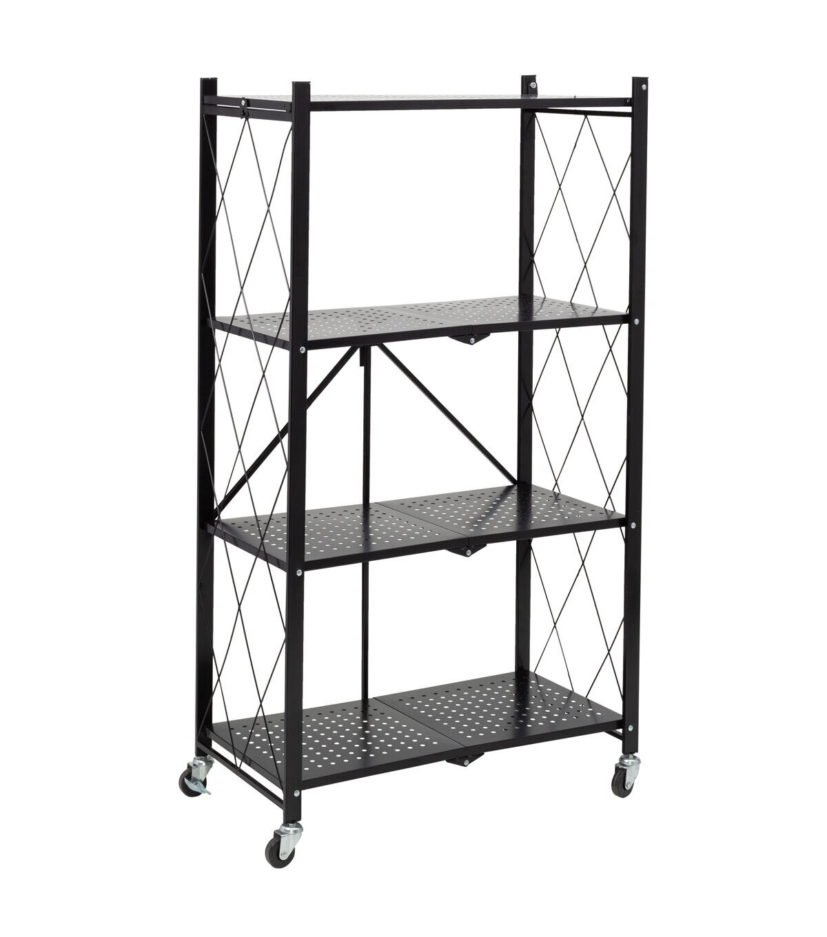 Honey Can Do 28" x 49.5" Black Folding 4 Tier Metal Rolling Shelf