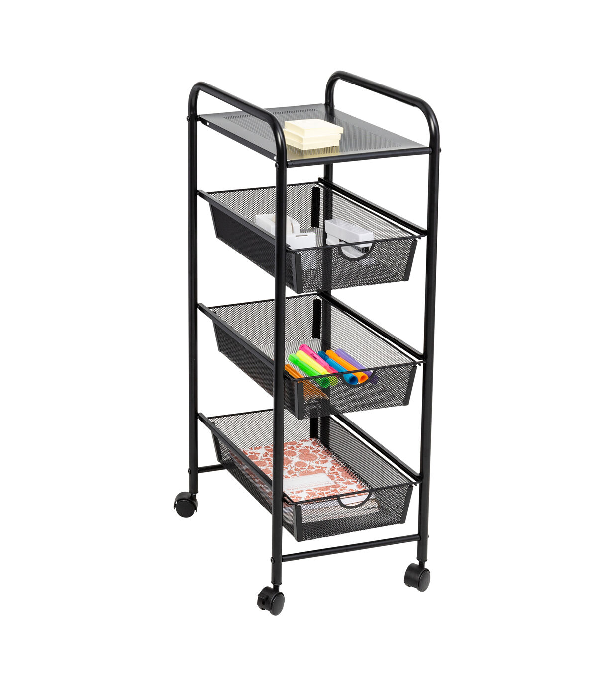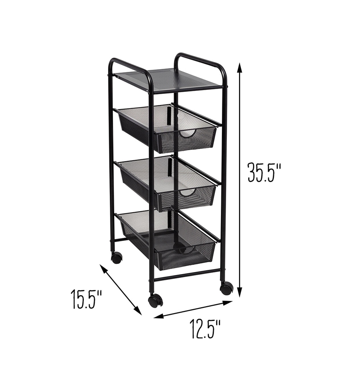 Honey Can Do 12.5" x 35.5" Black Metal Mesh 3 Drawer Storage Cart