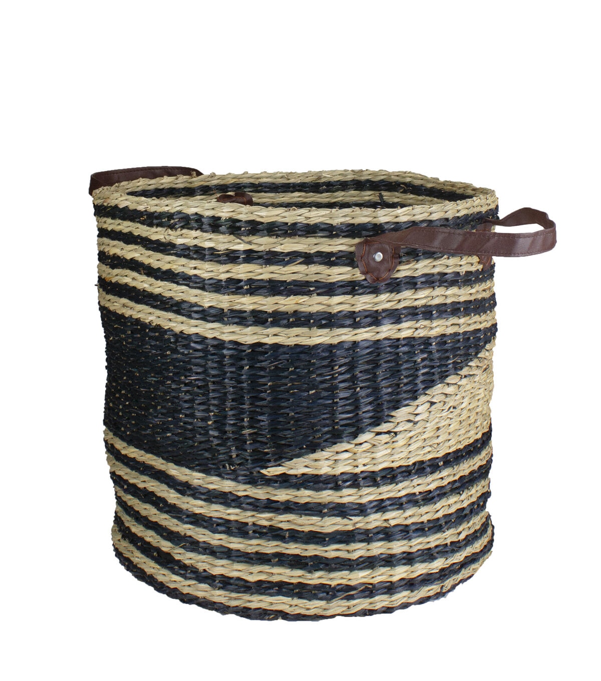 Northlight 15" Beige & Black Woven Seagrass Basket With Handles