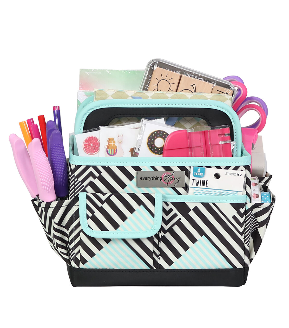 Everything Mary 8" Teal & Black Geometric Collapsible Craft Caddy