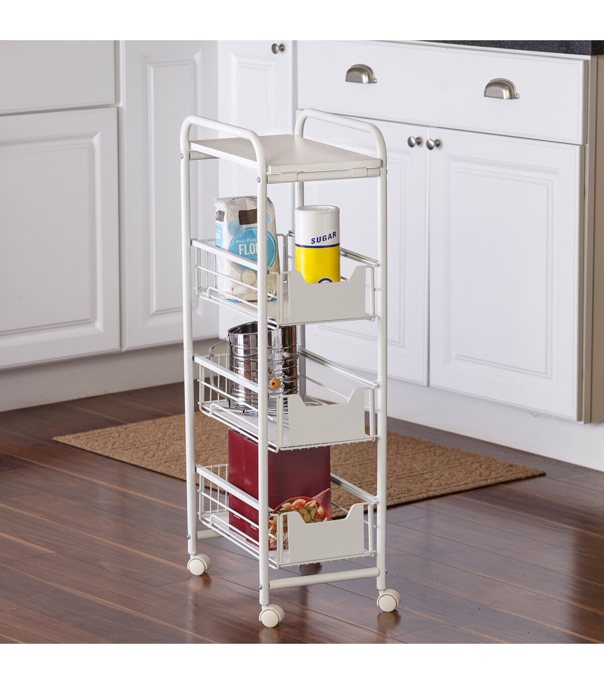 Honey Can Do 15" x 33" White 4 Drawer Slim Rolling Cart