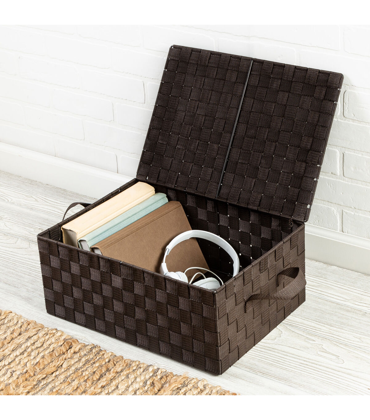 Honey Can Do 17" Espresso Woven Storage Box With Hinged Lid