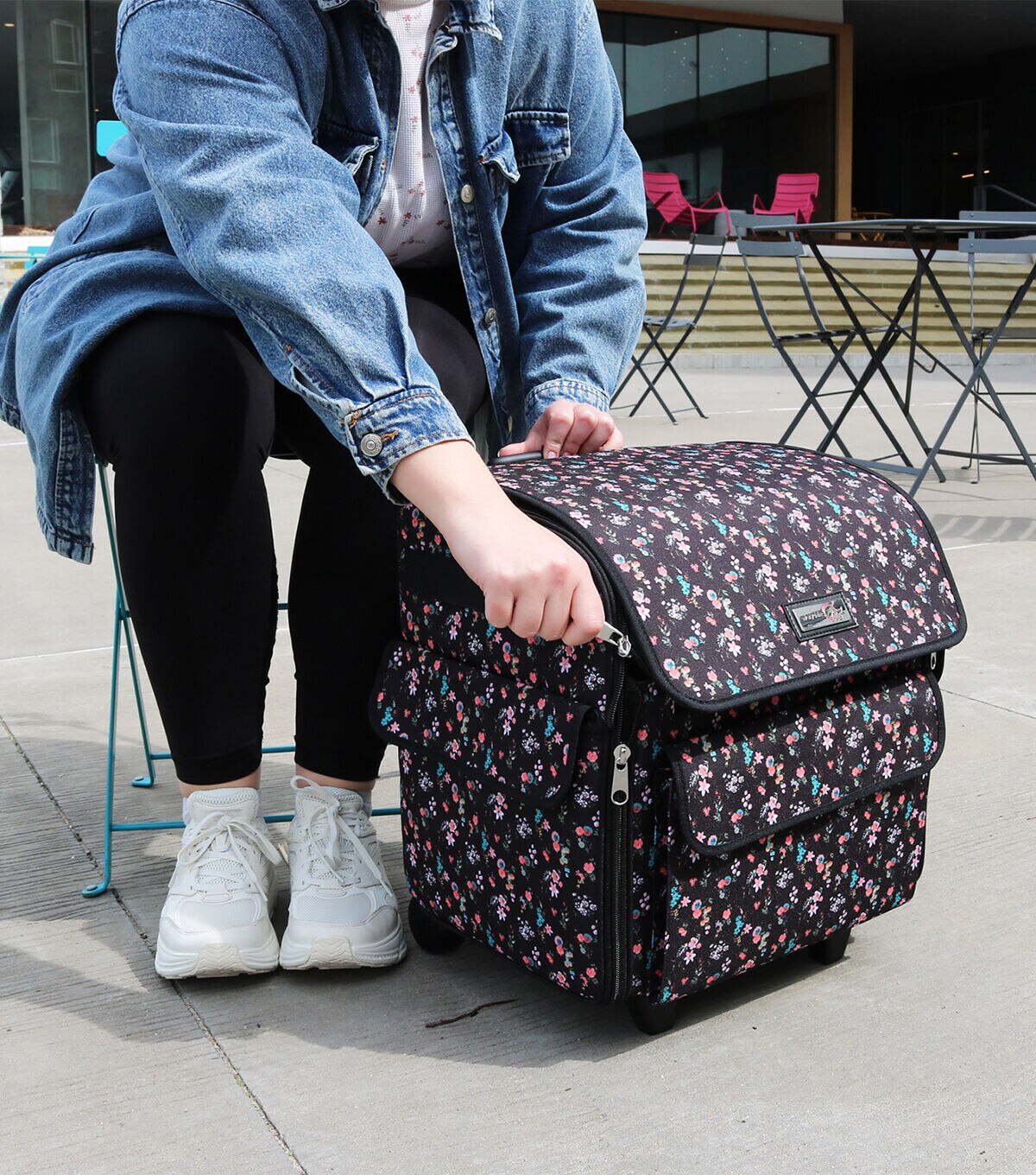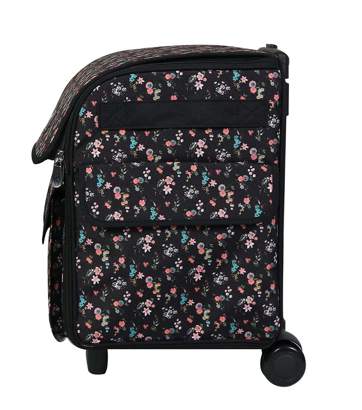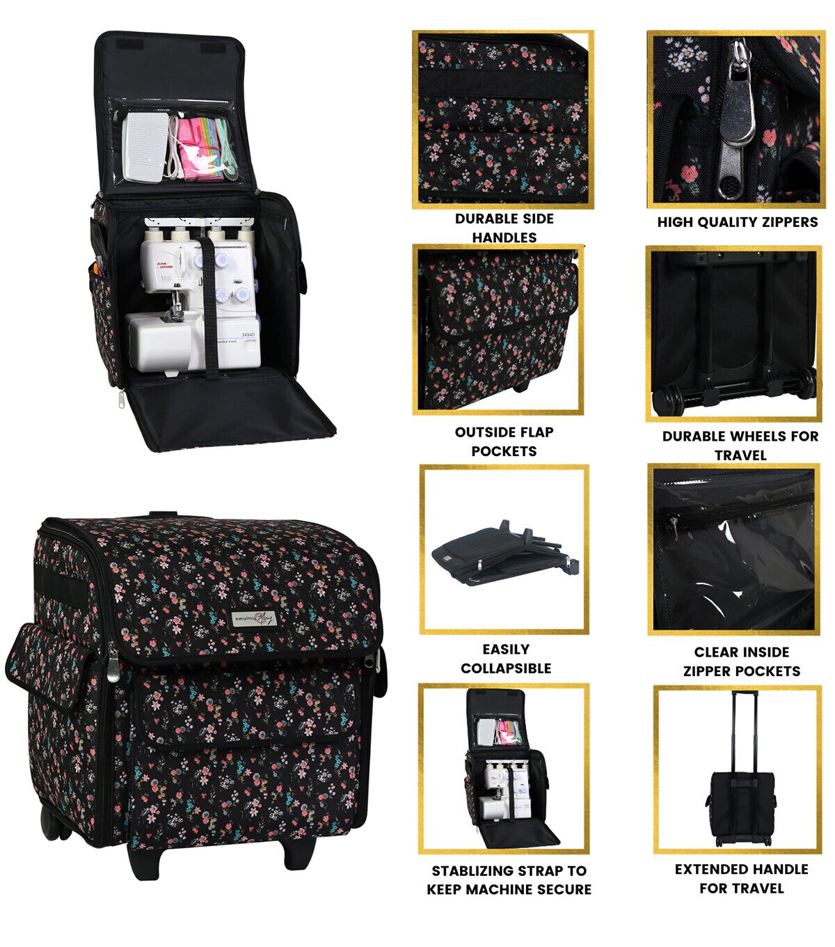 Everything Mary 15" Floral on Black Rolling Serger Machine Storage Case