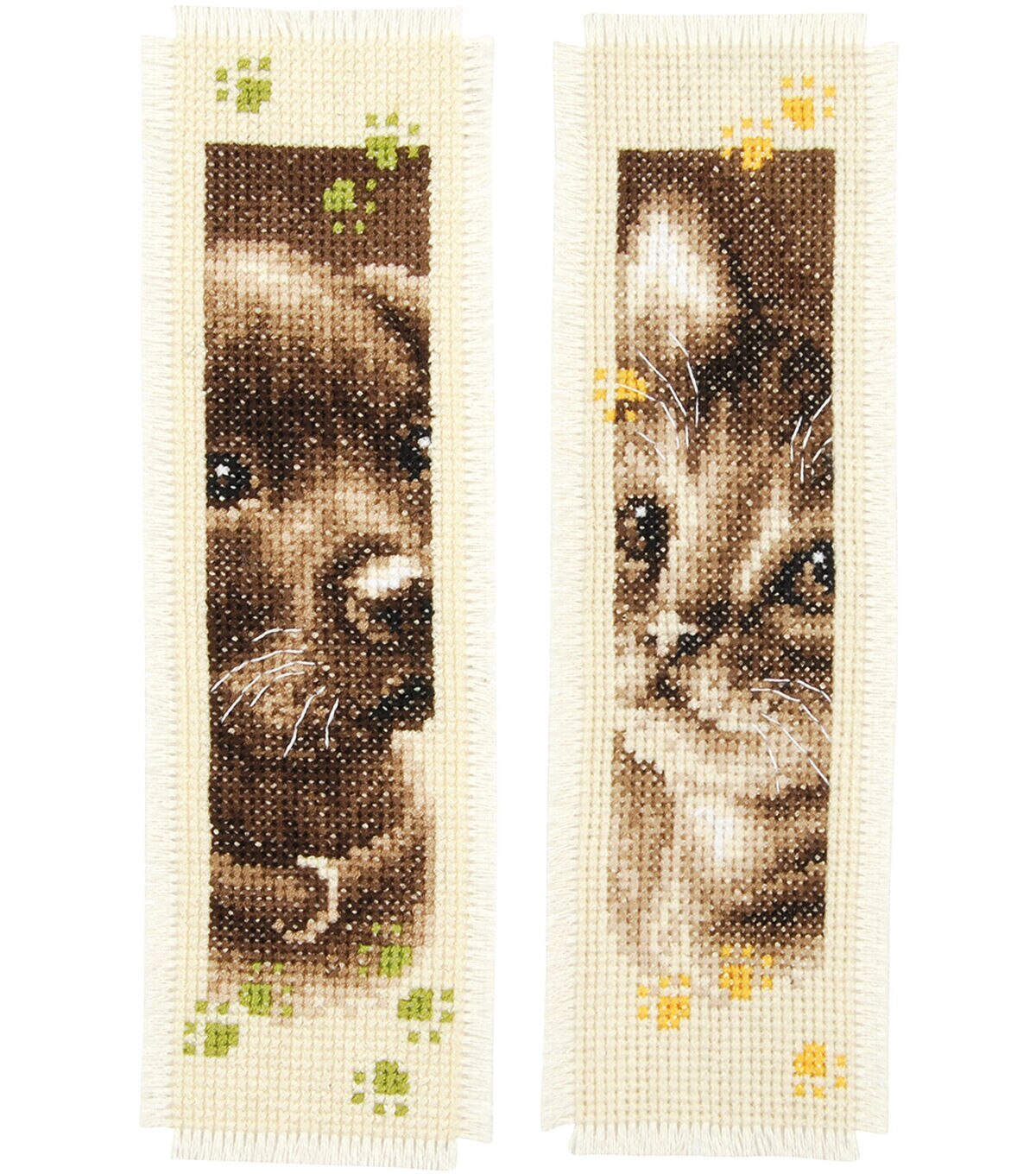 Vervaco 2" x 8" Cat & Dog Bookmark Counted Cross Stitch Kit 2ct